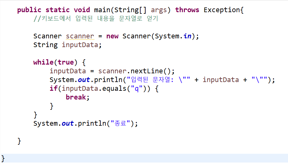 System.in.read(): 키보드에서 입력된 키코드를 읽습니다.